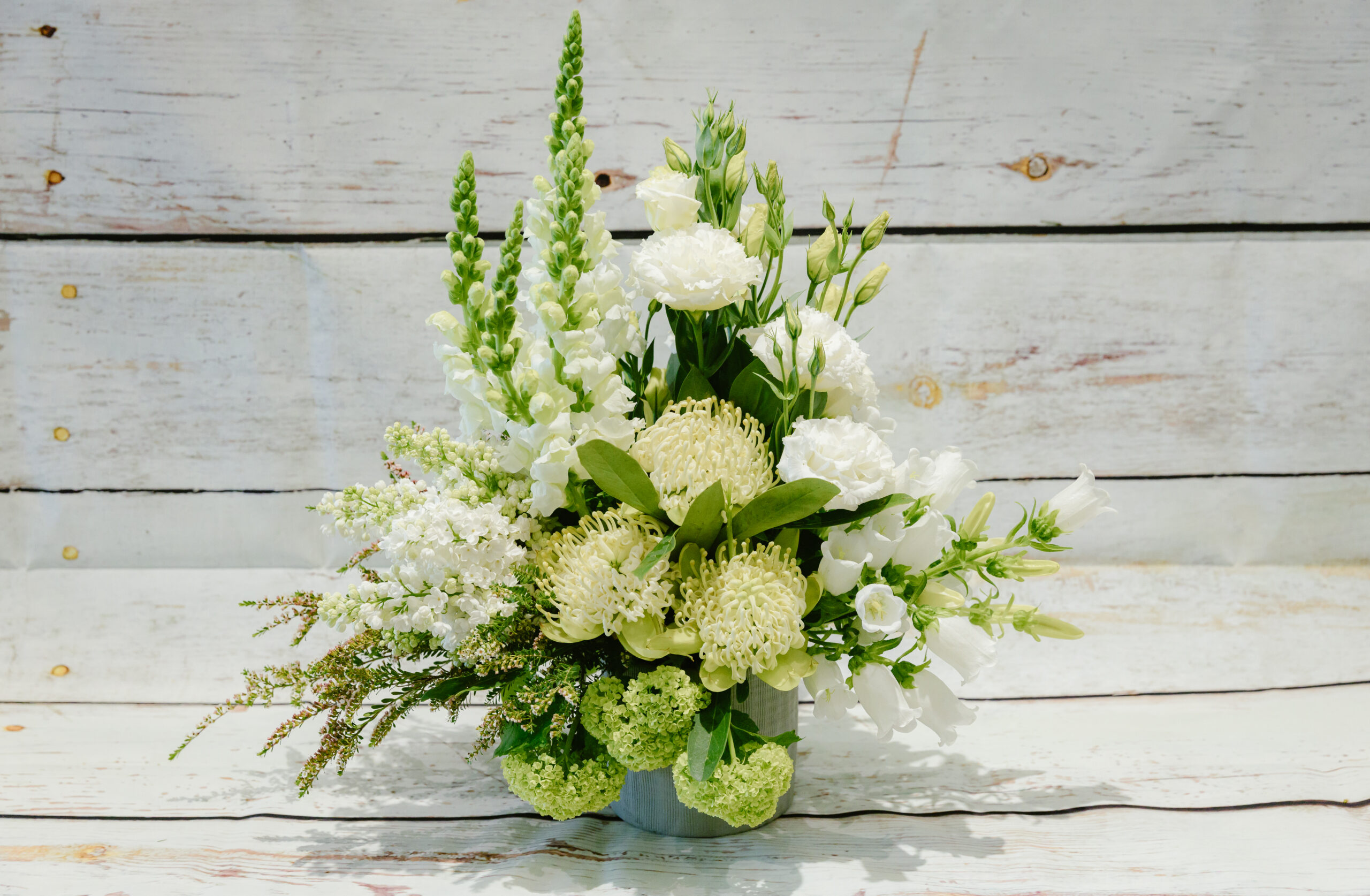 Elegant and chic, you can’t go wrong with the classic white and green arrangement. Our designers will arrange beautiful seasonal white and green flowers into a stylish vessel for you.